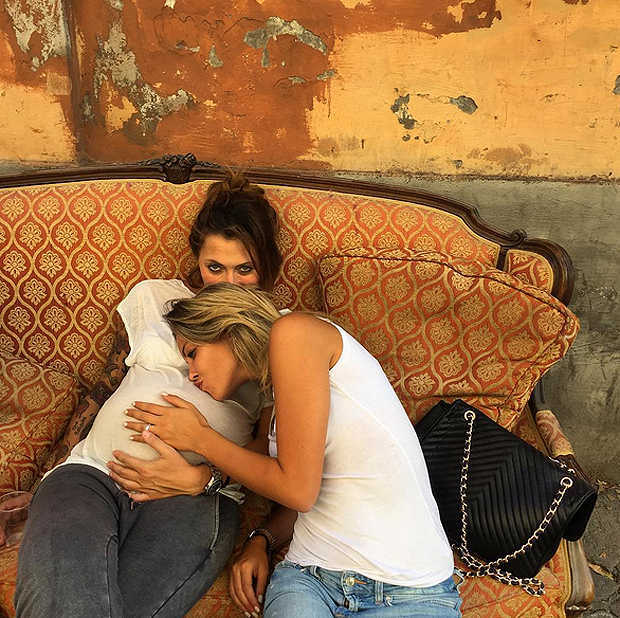 Costanza Caracciolo bacia il pancione della sua amica Irene Capuano.
