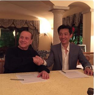 Stretta di mano tra Berlusconi e Bee per la trattativa sul Milan. Il thailandese sarà proprietario del 48% del club e vicepresidente